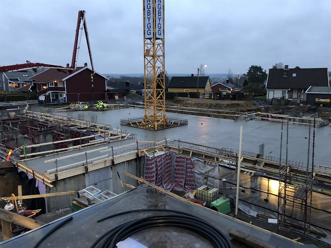 På vårt prosjekt Karlshus Park i Råde nådde vi en liten milepel før jul da dekket over parkeringskjelleren ble støpt.