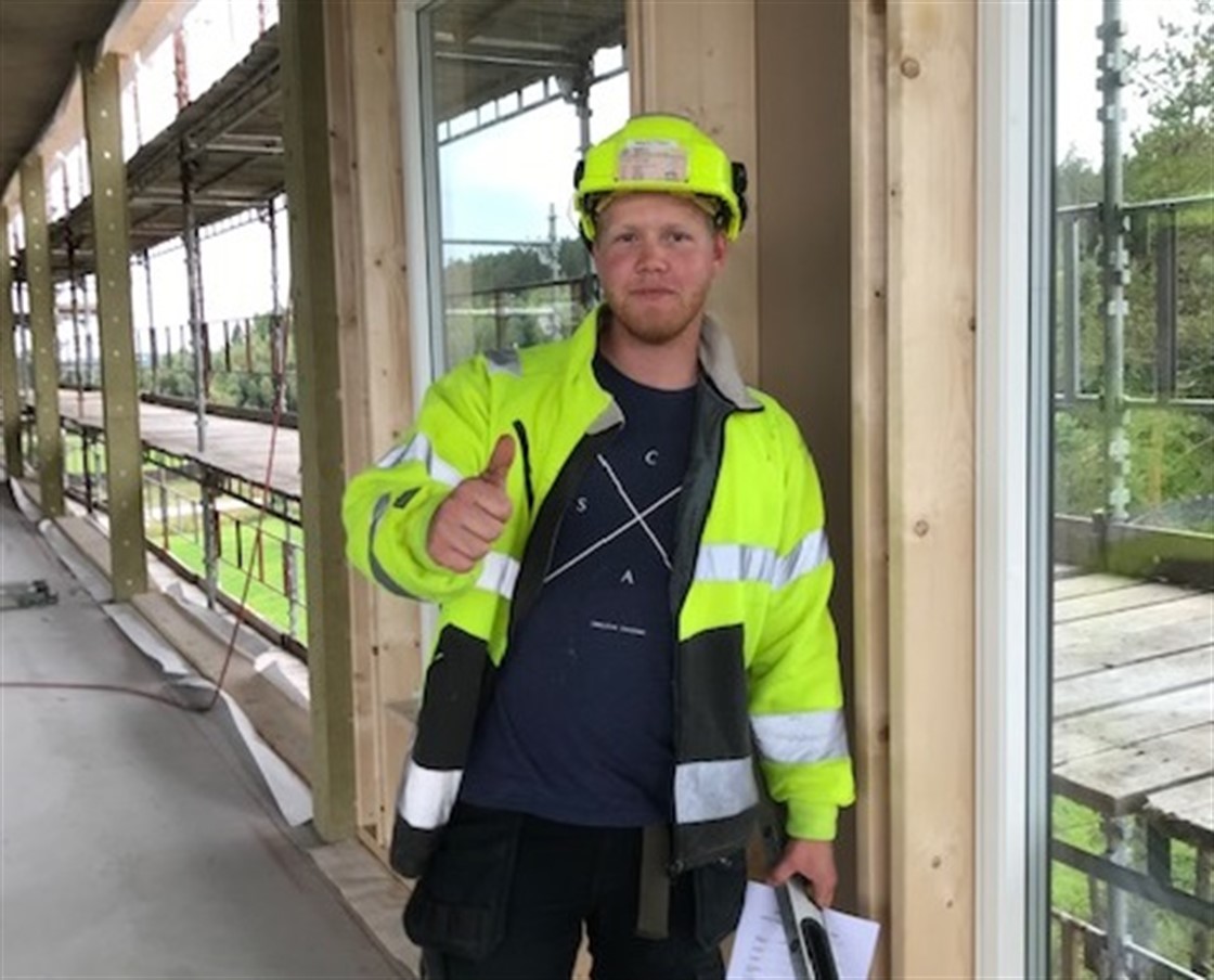 Magnus Eriksen har bestått fagprøven i tømmerfaget.