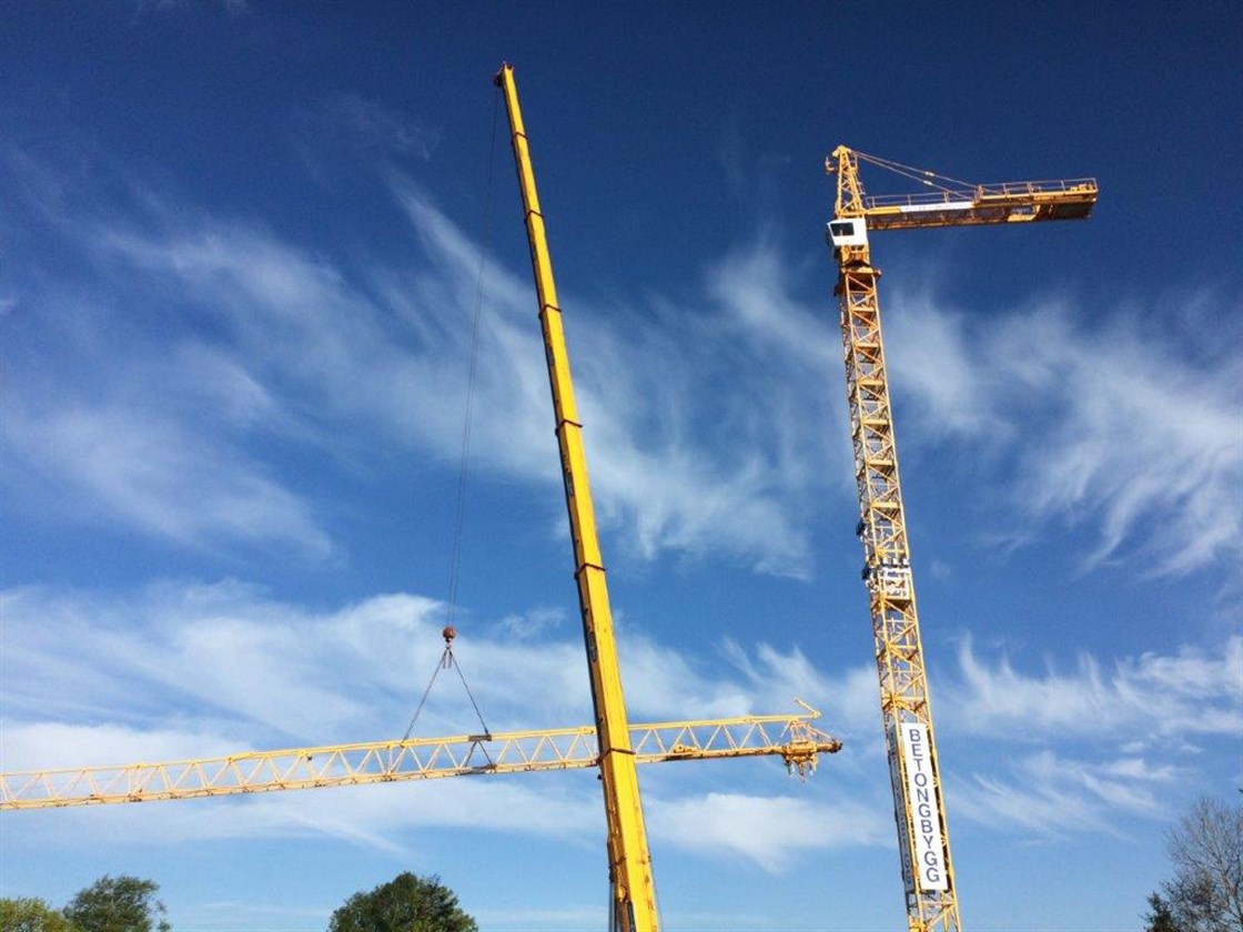 Det har vært travle dager på Rosenvinge Park, men nå er kran nr 2 oppe. Begge godt synlig fra E6 i den rette vinkelen...
