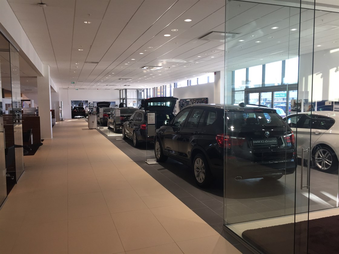 Bilbutikk for nysalg av BMW, Mini og Ford med tilhørende bruktbilavd. verksted, delelager, vaskehall etc. har på kort tid blitt etablert i det tidligere tomme næringslokalet. Morten og Terje har styrt et fint prosjekt med mange utfordringer, korte frister, men til slutt med et bra resultat.
