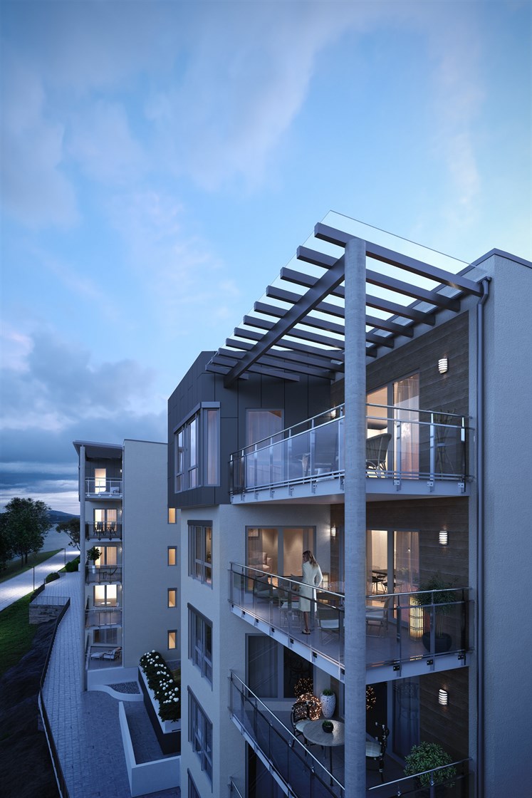 Fra garasjen er det heis til leilighetene som har energibesparende løsninger som vannbåren gulvvarme, balansert ventilasjon med varmegjenvinning, samt sprinkleranlegg. Solforholdene utnyttes maksimalt med storebalkonger og standarden er generelt god med fliser, parkett og strie. Leilighetene har livsløpsstandard iht. til TEK 10.Dette er den nyeste tekniske forskriften med skjerpede krav til bl.a. energiutnyttelse og isolasjon. Forskriften sikrer også at leilighetene er tilpasset rullestolbrukere.