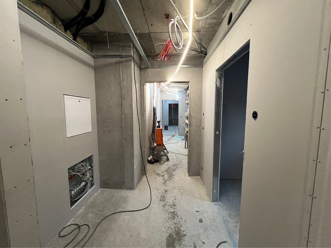 Byhusene har nådd milepelen med tett bygg og vi starter nå med ytterveggene på bygg B. Målet her er tett bygg i mai.
