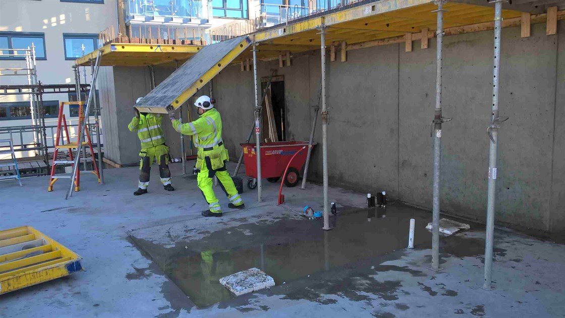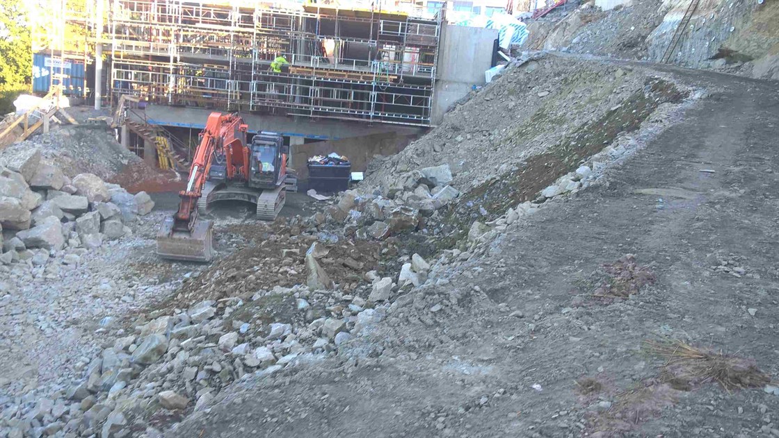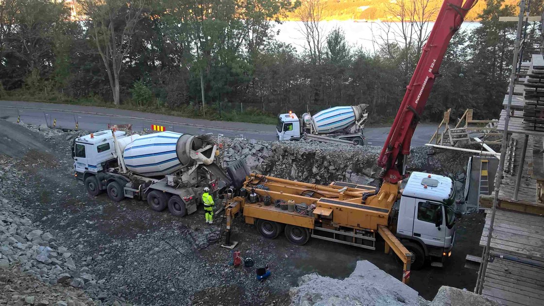 Betongarbeidene på bygg C og D går som planlagt. Byggene begynner nå for alvor å reise seg opp fra fjellet. De heldige som har kjøpt leiligheter her får en fantastisk utsikt over Mossesundet og over til Jeløy. Her er det bare for betonggutta å stå på for taket skal på i januar...