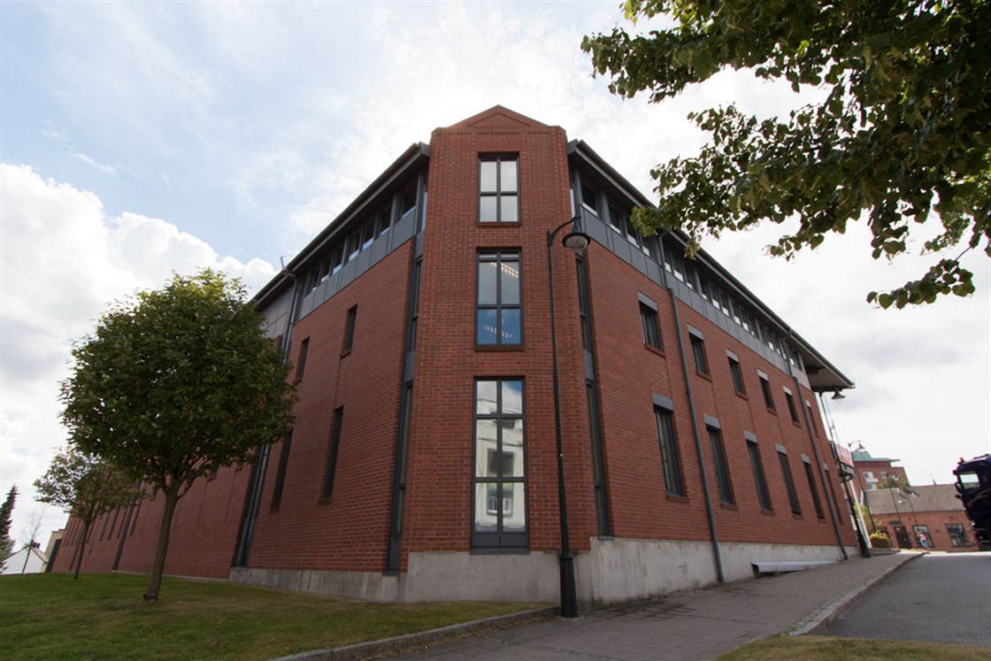 Fasaden´s hovedmateriale er tegl, utvendige dører, porter og vinduer er i aluminium med farge. Taket er kledd med båndtekket metallplater.