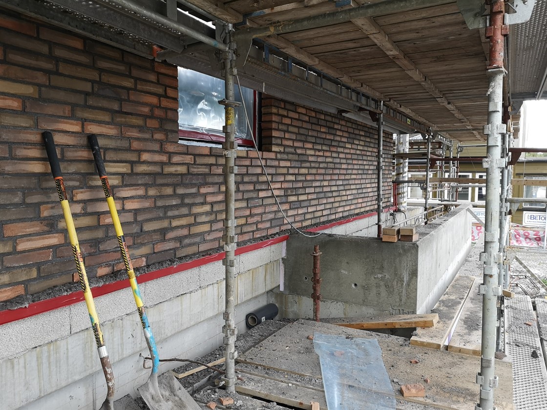 Vi er i gang med muring og kommer til å holde på med dette de neste 8 ukene.