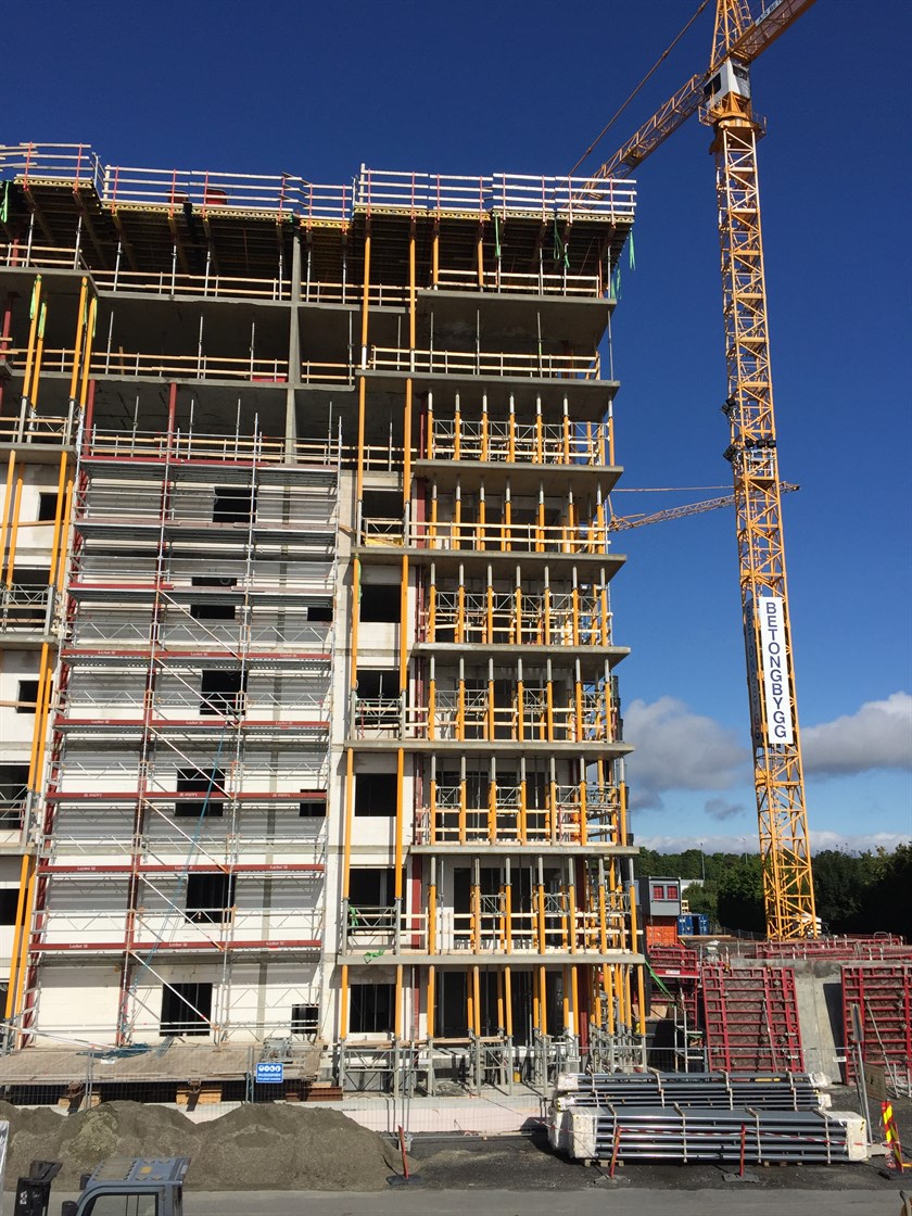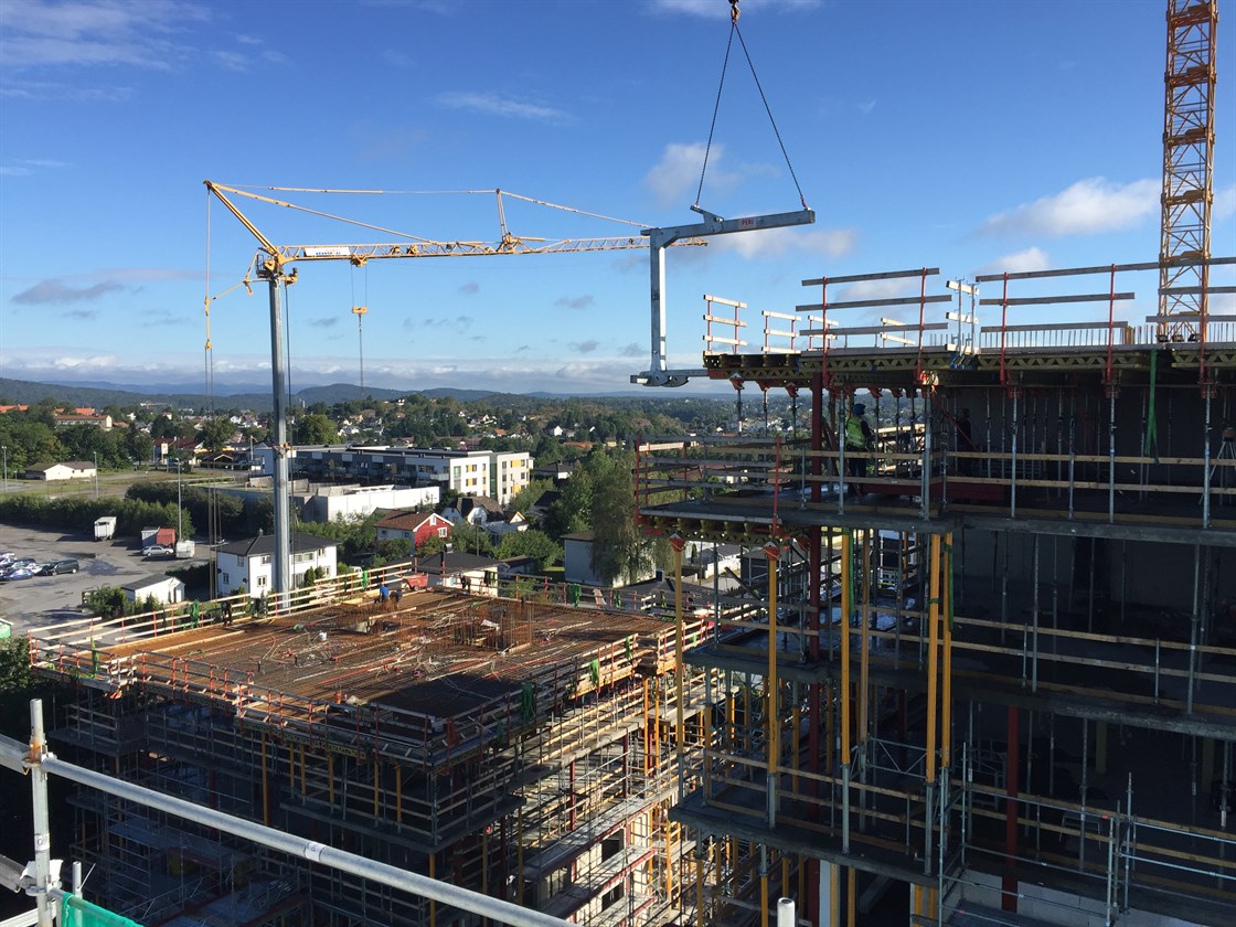 For T2 er reises forskalingen for dekke over 9. etasje og vi er godt i gang med muring av Ytongfasader. Vi er også i gang med innvendig bindingsverk i de nederste etasjene.