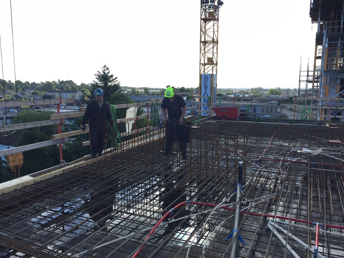 For T3 gjør vi klart for støp av dekke over 5. etasje og også her er muring av Ytongfasader i gang.
