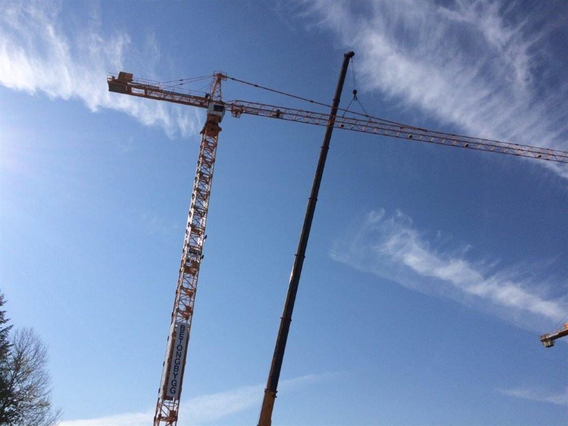 Det har vært travle dager på Rosenvinge Park, men nå er kran nr 2 oppe. Begge godt synlig fra E6 i den rette vinkelen...