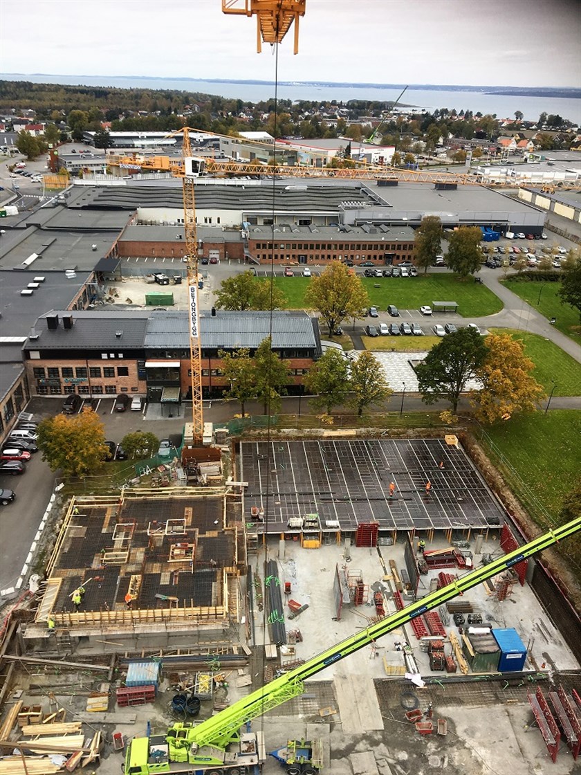 Fantastisk utsikt fra toppen av krana, ser utover hele Oslofjorden! Langt der nede gjøres det klart for de første dekkestøpene!