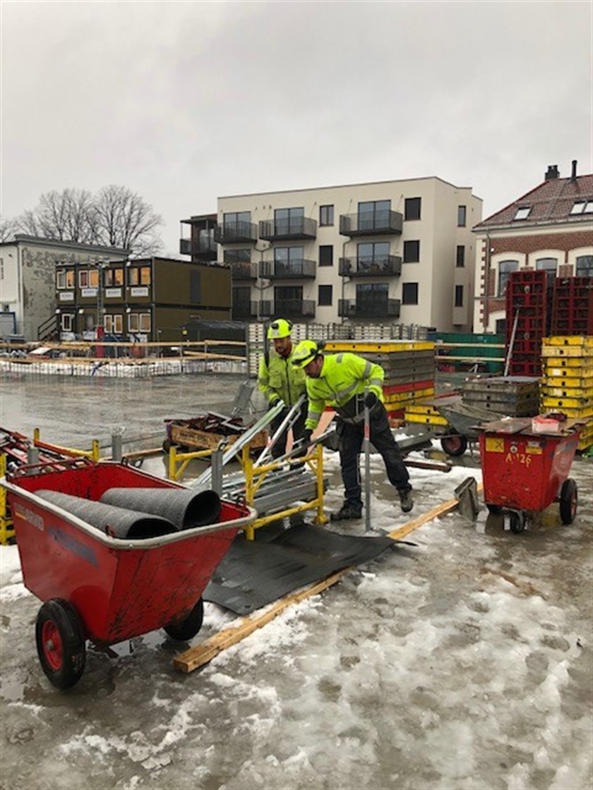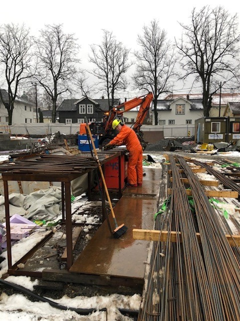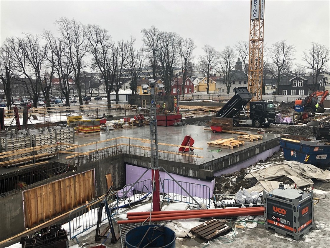 Tilbakefylling mot kjeller pågår for fult og grytetekking av dekke over kjeller mellom byggene starter denne uke.