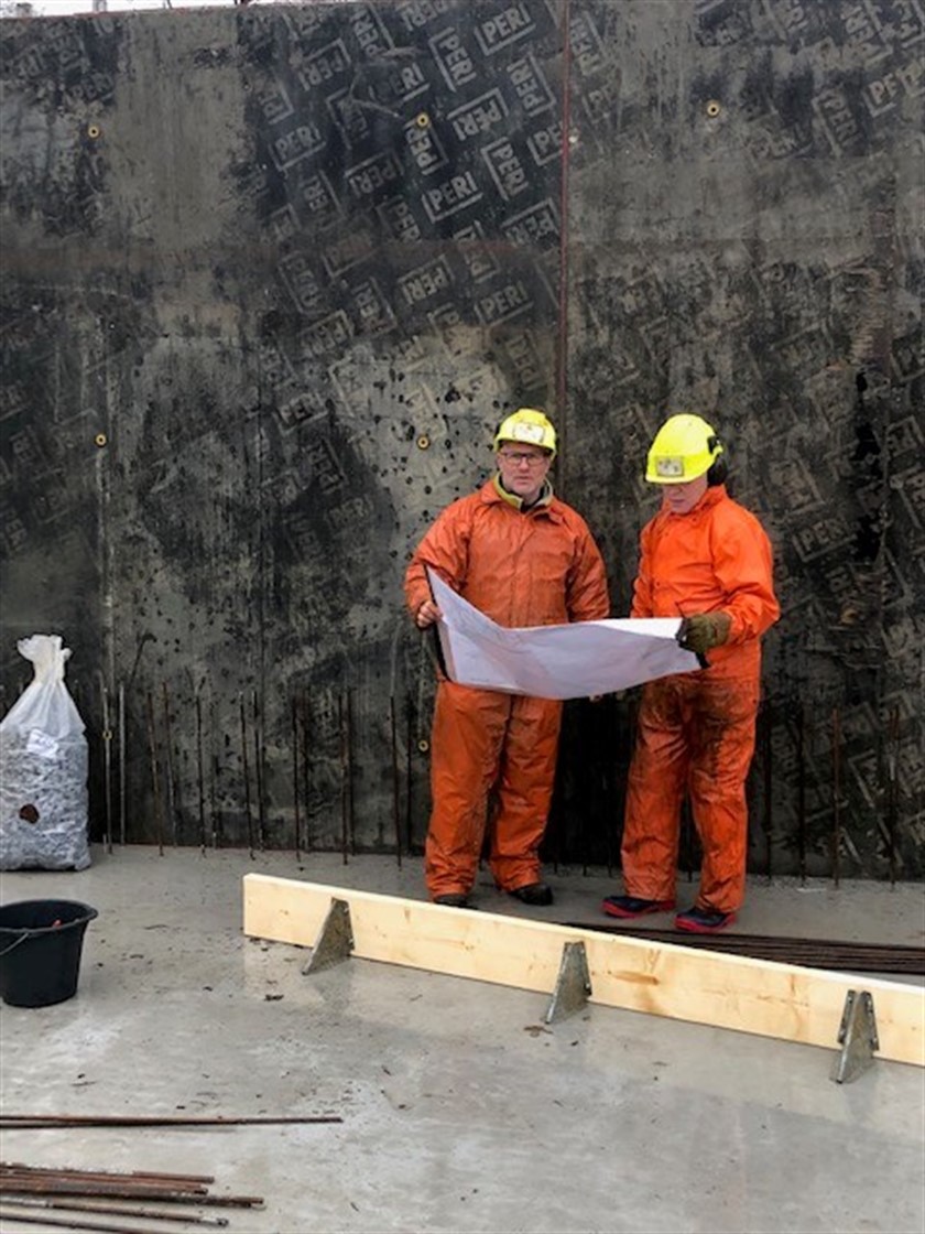Vegger i plan 1 forskales, armeres og støpes fortløpende og det vil ikke ta lang tid før vi begynner med reis for neste dekke.