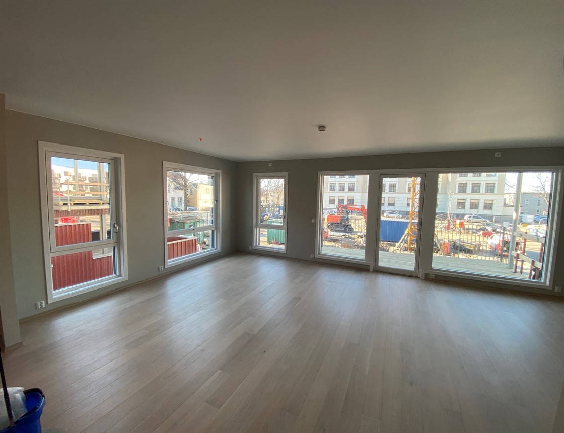 Gjenstående arbeider er byggvask og sluttfinish på fellesarealene.