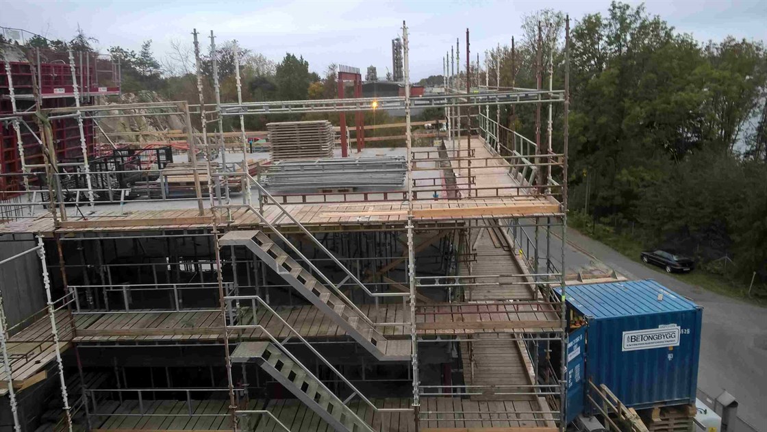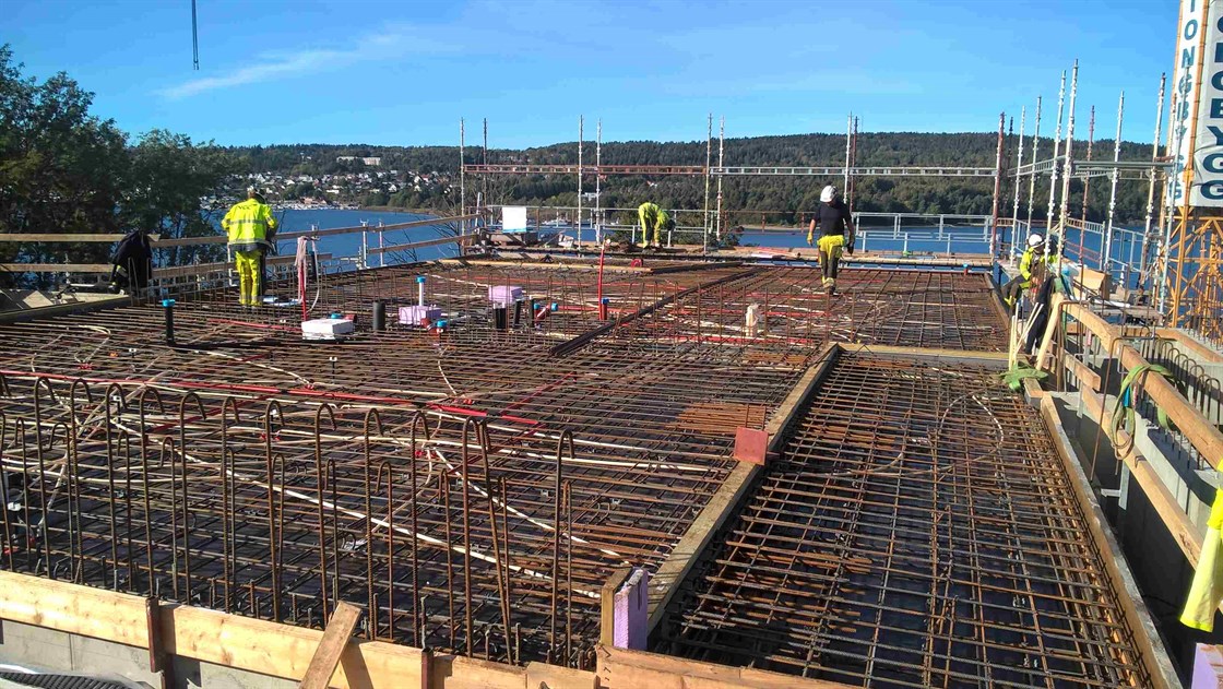 Betongarbeidene på bygg C og D går som planlagt. Byggene begynner nå for alvor å reise seg opp fra fjellet. De heldige som har kjøpt leiligheter her får en fantastisk utsikt over Mossesundet og over til Jeløy. Her er det bare for betonggutta å stå på for taket skal på i januar...