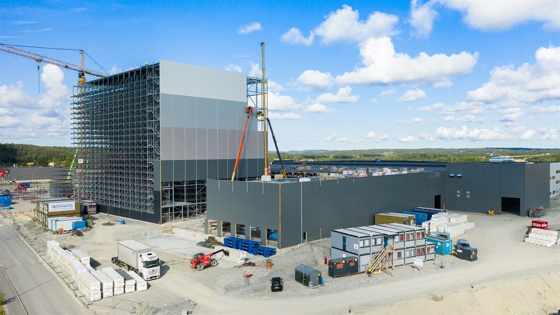 I disse dager kles lageret med fasadeplater - de som jobber med det har en luftig arbeidsplass.