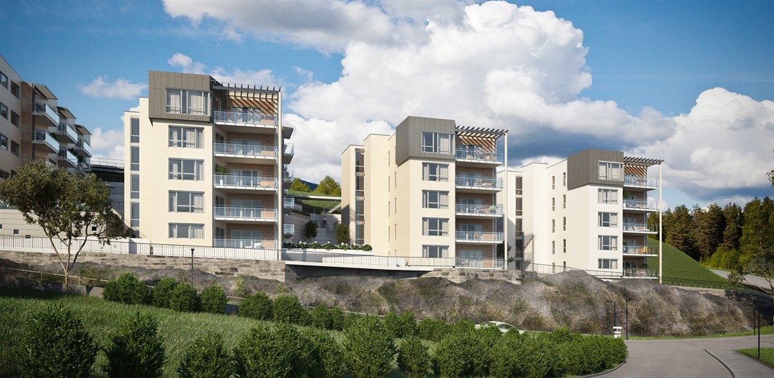 Trinn 2, 38 leiligheter i bygg C, D og E er under oppføring. Innflytting er beregnet mars/april 2018.